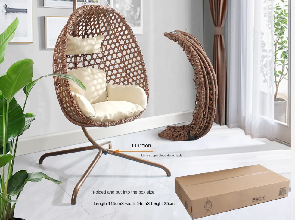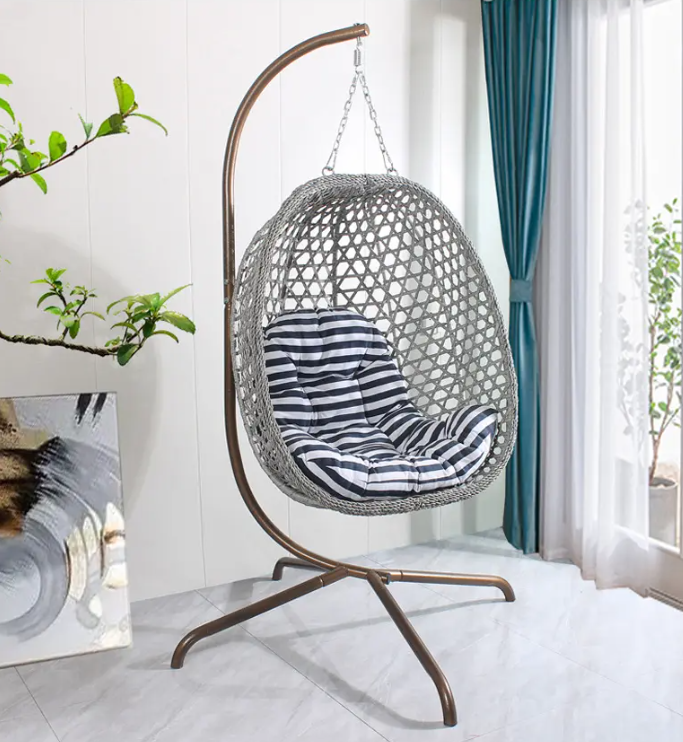 - Robuuste Constructie: Onze schommelstoel is vakkundig vervaardigd met een stevige metaal constructie, zodat je zorgeloos kunt schommelen zonder concessies te doen aan stabiliteit.