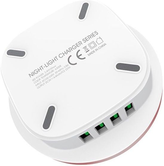 LDNIO Premium Oplaad Station met 4 USB Poorten 4.4A en LED nacht verlichting met druk knop voor aan/uit zetten van de LED