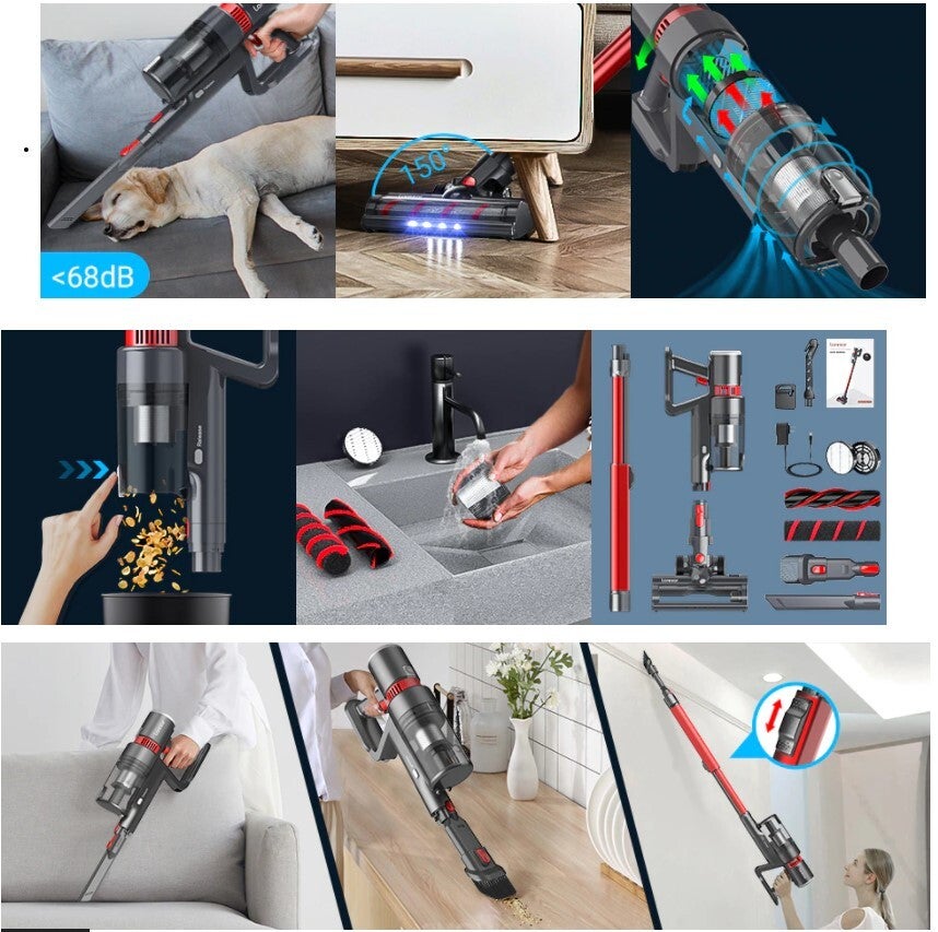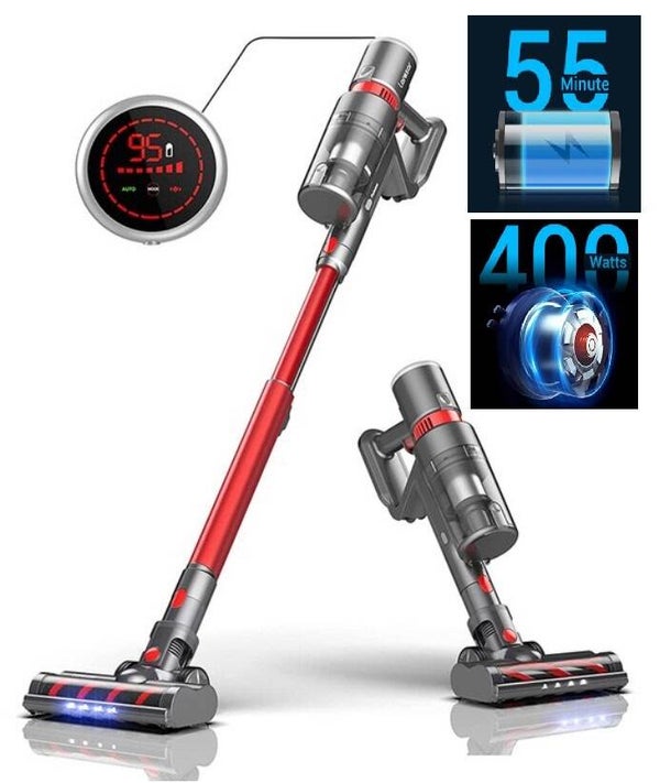 30kPa Super Zuigkracht Power De draadloze bezem vacuüm is uitgerust met een krachtige 400W borstelloze digitale motor dat produceert een krachtige 30KPa zuigkracht pick-up een puin met gemak. Met 4 opzetborstels en nozzles, u kunt schakelen tussen een bezem stofzuiger en een handheld stofzuiger op wil.