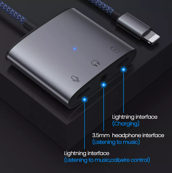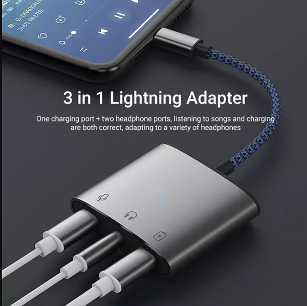 3-in-1-aansluiting 3,5 mm met dubbele hoofdtelefoonaansluiting en oplaadpoort voor iPhone Compatibel Compatibel met iOS