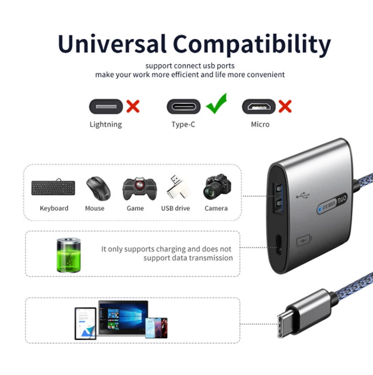 2 in 1 Dual Type C Adapter voor huawei Type-c Telefoon Opladen Oplader Adapter Splitter Converter PD 60W USB 3.0