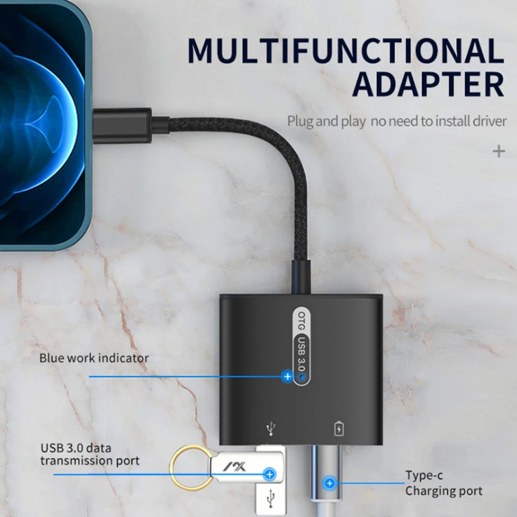 2 in 1 Dual Type C Adapter voor huawei Type-c Telefoon Opladen Oplader Adapter Splitter Converter PD 60W USB 3.0