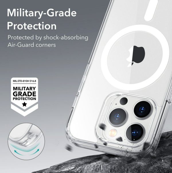 Valbescherming volgens militaire standaard: streng getest om volledige bescherming aan alle kanten te garanderen, met speciaal ontworpen Air Guard-hoeken die schokken absorberen, zodat je telefoon dit niet hoeft te doen